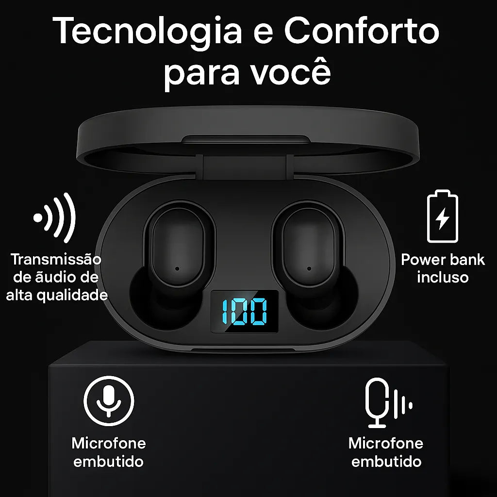 FONE DE OUVIDO SEM FIO BLUETOOTH 5.3 ESPORTIVO – MAIS LIBERDADE, MAIS SOM