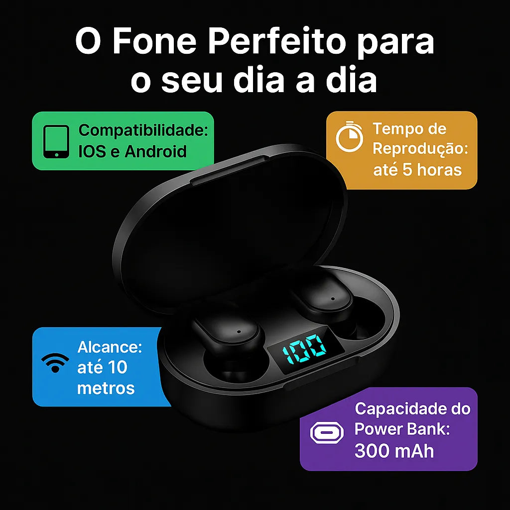 Com esse fone você tem mais liberdade de movimento, qualidade superior de som e design moderno. Ideal para quem não abre mão de estilo, praticidade e desempenho no dia a dia.
