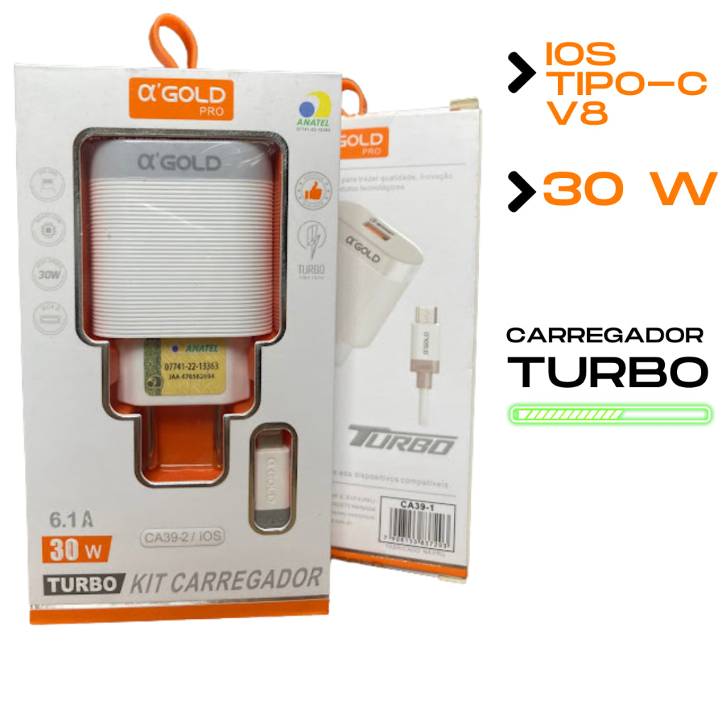 Este produto é um conjunto de carregador turbo USB 5V e cabo micro USB V8. A característica "turbo" indica que ele é capaz de fornecer energia de forma mais rápida e eficiente do que um carregador USB comum. O conjunto vem com um cabo micro USB V8, que pode ser usado para conectar o carregador a qualquer dispositivo com entrada V8 (micro USB), o que atende a todos os aparelhos nessa configuração.