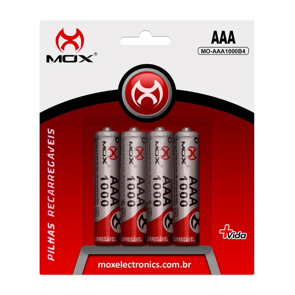 Cartela com 4 Pilhas Recarregáveis AAA 1000mAh MOX– Eficiência e Economia